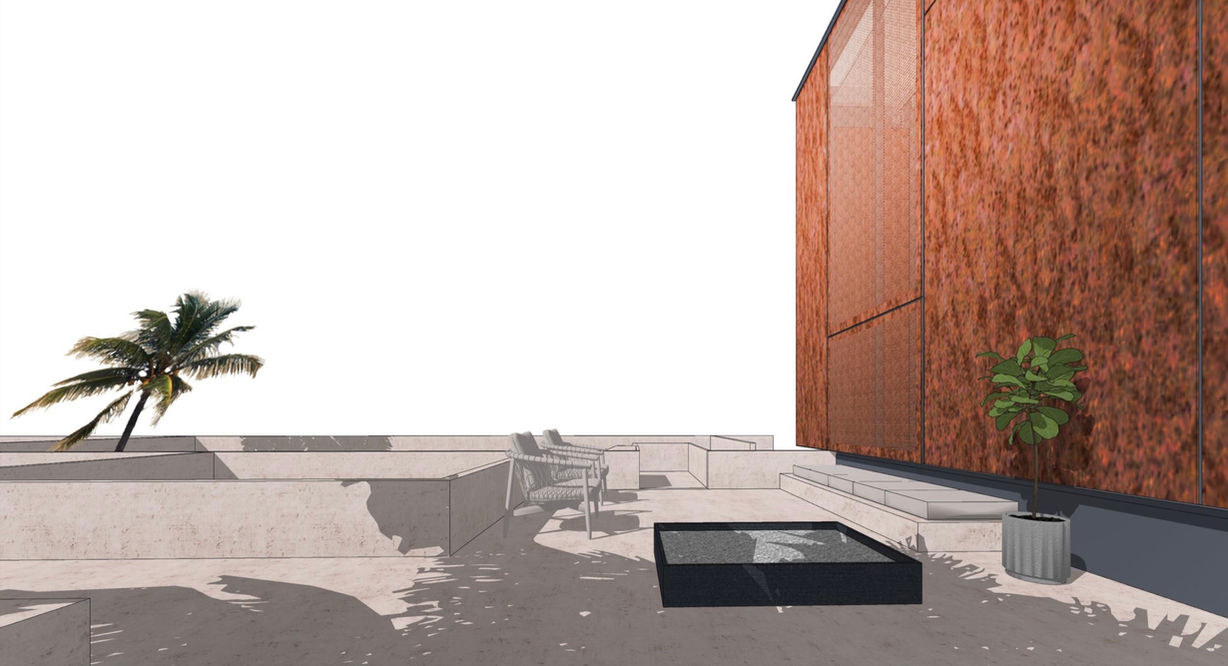 The central courtyard linked with the roof top by staircase in the garden to gathering the spaces for guest to enjoy at both levels.